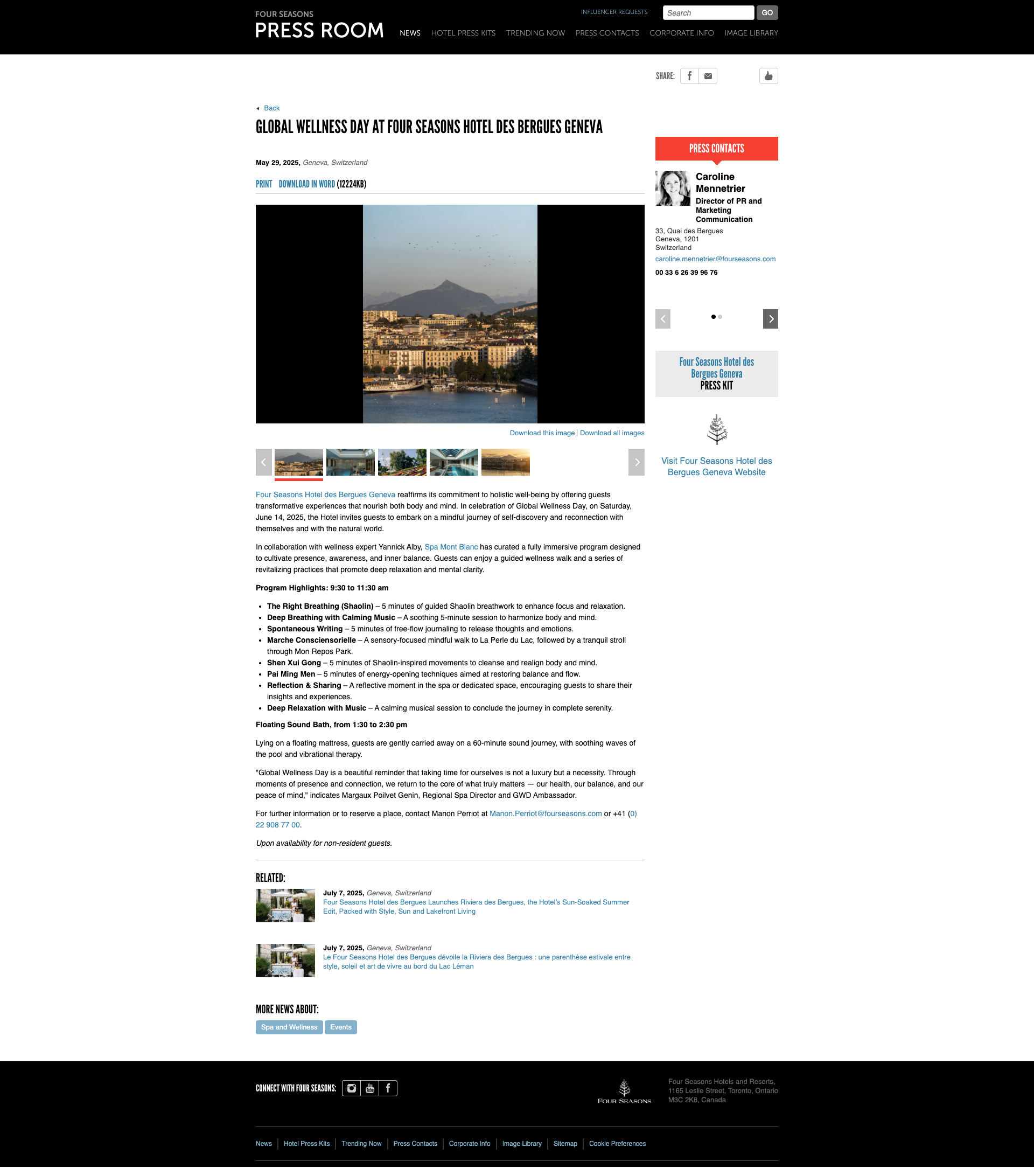 Global Wellness Day at Four Seasons Hotel des Bergues Geneva / FourSeasons