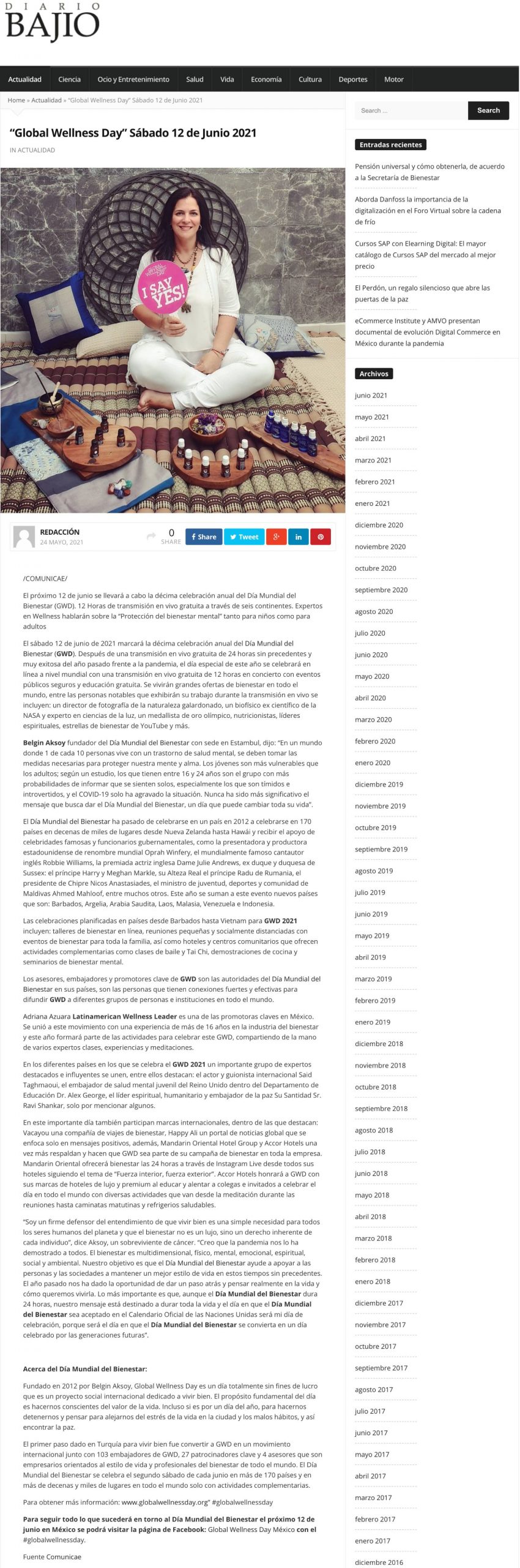 “Global Wellness Day” Sábado 12 de Junio 2021 / Dia Rio Bajio