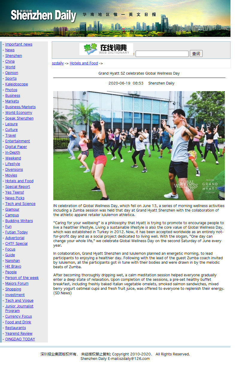 Grand Hyatt SZ celebrates Global Wellness Day / SZ Daily